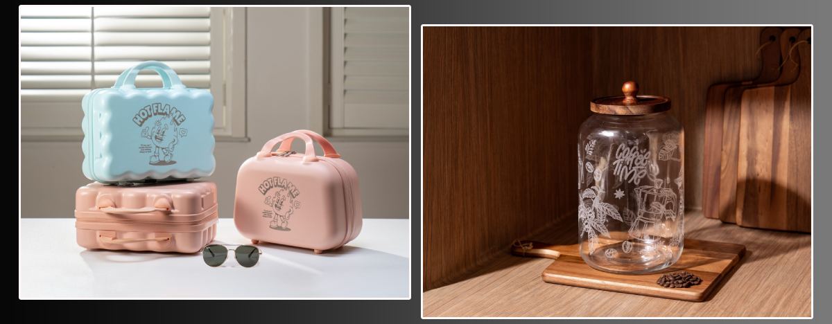 - Циліндричне гравіювання: упаковка, пляшки, келихи, тубуси.