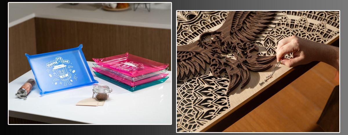 - Велика робоча зона для панелей, меблів, вивісок або пакетної обробки дрібних виробів.